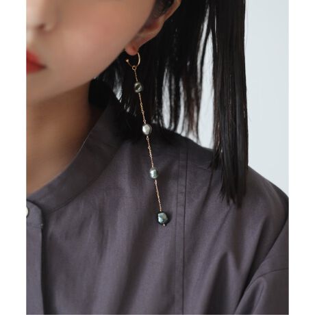 神秘的な4ピースのタヒチパールが印象的なロングピアス。