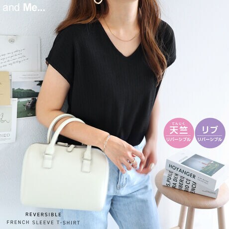 リブ 天竺 半袖 Vネック リバーシブル Tシャツ