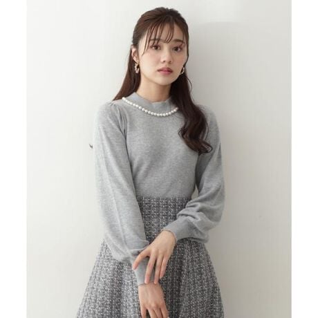 【商品特徴】まるでパールネックレスをしているような見え方のデザインニットです。昨年ご好評いただいたアイテムを、今年はチクチクしにくいアンゴラの糸で仕上げており、着心地も抜群です。襟ぐりのパール装飾が顔周りを華やかに見せてくれるので、クリスマスや年末などのちょっとしたイベントにもオススメです。後ろネックの涙開き&パールボタン、ボリュームスリーブもポイントになります。【スタイリング】タイト、フレアースカートまで相性抜群です。ジャンスカとのレイヤードにもおススメです。※この商品は、着用中の摩擦により、多少の毛抜けや毛羽立ちが生じ、毛羽が付着します。また、繰り返しの摩擦により、毛玉(ピリング)が発生しますので、ご着用の際はご注意ください。