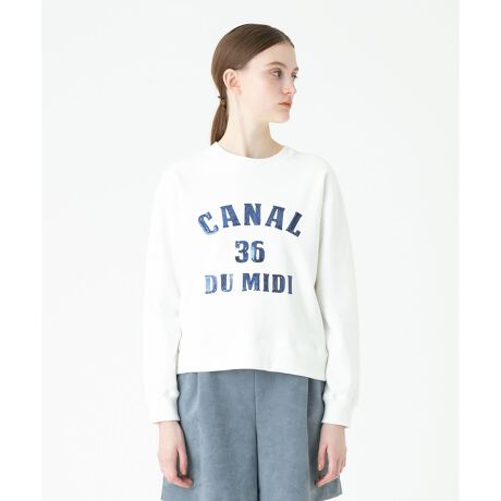 キラキラと輝くスパンコール刺繍がポイントのスウェットプルオーバー。カジュアルに見えがちなスウェットですが、スパンコール使いとコンパクトなシルエットで女性らしい印象でお召いただけます。フレアスカートやワイドパンツなどボリュームのあるボトムスとのメリハリのあるコーディネートがお勧めです。「CANAL DU MIDI」:フランスから地中海に面した湖まで360kmにまで及ぶ、文化遺産に認定された美しいミディ運河※手洗い可能です。