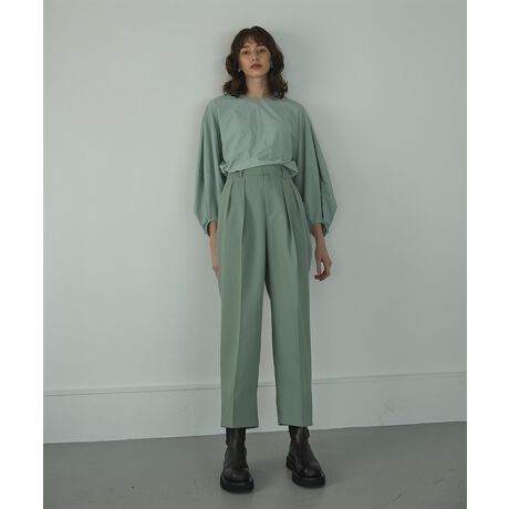タックを2本入れることによりシルエットにこだわったセミワイドパンツ。
