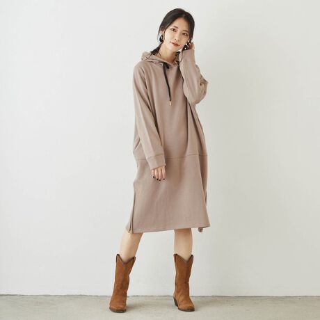 肌触りのよい裏シャギー素材のフードワンピースが今年も登場。