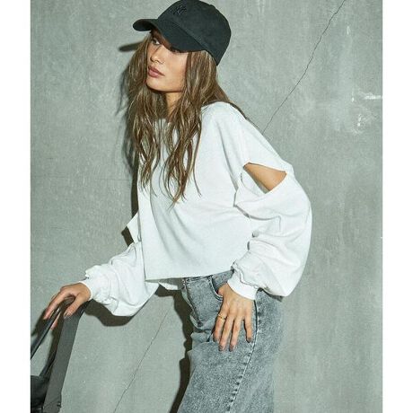 ゆったりとしたデザインんで二の腕を細く、綺麗に魅せるデザインでどのパンツやスカートに合わせてもコーディネートが完成するアイテム。