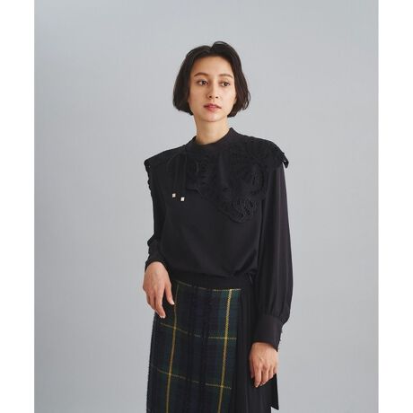 着回し自在!取り外し襟付きのフェミニンブラウスが登場。上品なテトロン/レーヨンのシャツ素材を使用し、大きなカットワーク刺繍襟を添えて、クラシカルなムード漂う一枚に仕上げました。襟は取り外し可能なので、気分や装いに合わせて気軽にイメージチェンジも楽しめます。低めのスタンドネック&ボタンレスのミニマルなデザインが、様々なボトムス合わせを楽しめるポイント。スタイリングをワンランク上に格上げしてくれる着映えブラウスを、この機会にぜひ。