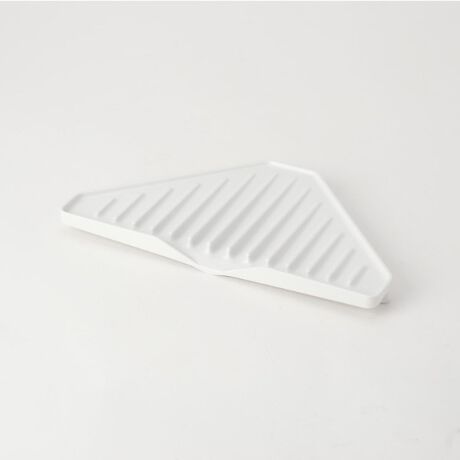波型のリブと傾斜で、乾燥が早く衛生的なコーナー水切りトレーは、使いづらいシンク角のスペースを有効活用できる形状。
