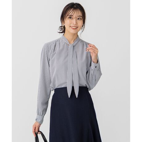 大人の通勤スタイルに重宝するキレイめボウタイブラウス