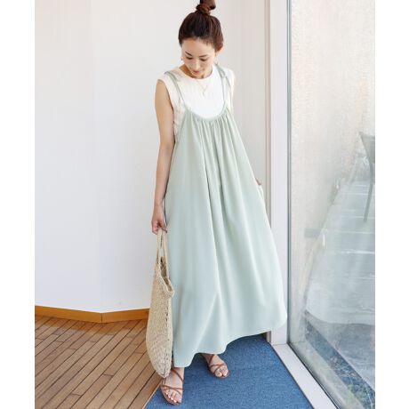 きれいめ ジョーゼット 肩リボン フレア キャミワンピース