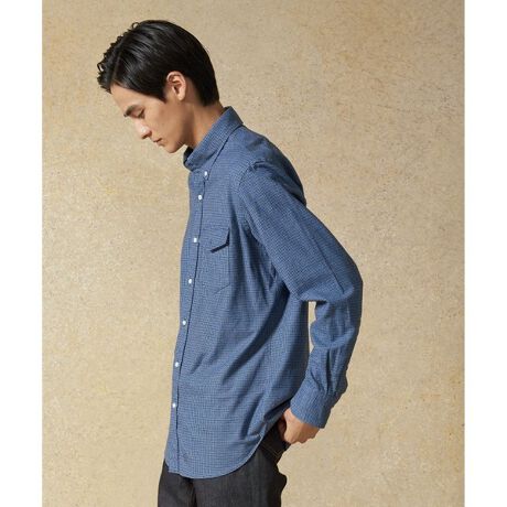 ■デザイン定番のBDパチフラです。緩やかなロールを描く衿は、ドレスとカジュアルの中間的な印象のため、様々なシーンでの着用が可能です。衿の分量感に合わせた前立て巾やフラップのついた胸ポケットは、J.PRESSが長年大切にしてきたベストバランスです。■素材コットンフランネル素材を使用。2色使いの千鳥柄は遠目では無地ライクに見えるので、羽織りからインナーまで幅広いスタイリングが可能です。カジュアルになり過ぎない上品な起毛感にもこだわっており、大人が着られる風合いも特徴的です。