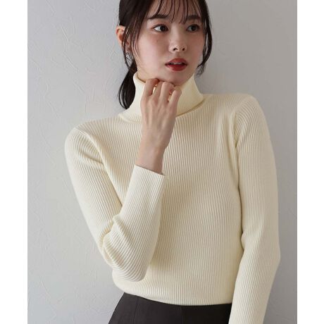 なめらかタートルネックリブニット