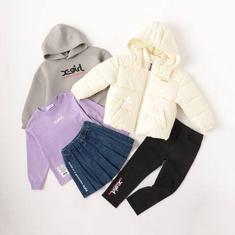 着まわしやすいシンプルさにこだわった5点セットです。フード着脱式のブルゾンは中わた入りでアウタースタイルに欠かせないあたたかな着心地を実現。肉感のあるプルパーカにはダンボールニットを使用し、カジュアルの中にきれいめな表面感をプラスしました。飽きずに繰り返し着用できる前後ロゴTシャツは、一枚でもインナーでもサマになるデザイン。レギンスには何にでも合わせやすいカラーで、デイリーユースにひとつ持っておくと便利です。プリーツが目を引くスカートはトレンドのデニム素材で仕上げ、コーディネートをさらにおしゃれに見せてくれます。大人めの落ち着いたカラーの組み合わせにしており、さまざまな着こなしを楽しめるラインナップです。内側にはお名前を記入できるタグつき。【透け感】透けない【生地の厚さ】普通※ブルゾンは厚い【伸縮性】あり※スカート・ブルゾンはなし【裏地】なし※ブルゾンはあり【ポケット】あり※Tシャツはなし【アジャスター】なし※スカート・レギパンはあり≪ブルゾンの重さ≫110cm/約440g