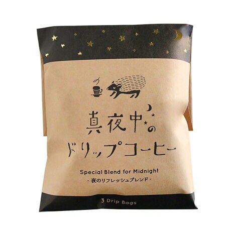 動物ごとに異なる味にブレンドした、ドリップバッグコーヒーです。クラフト紙のパッケージには、星空が金箔押しで表現されています。