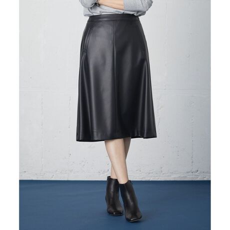 裾に向かってキレイに広がるシルエットのレザースカート。きちんと感がありながら、軽やかな見え感が特徴です。トップスをインしたキレイ目なスタイリングから、ボリュームのあるニットを合わせたカジュアルなスタイリングまで幅広い着こなしに活躍するアイテム。後ろウエスト部分にゴムが入っているため着脱しやすいのもポイント。総裏ありです。