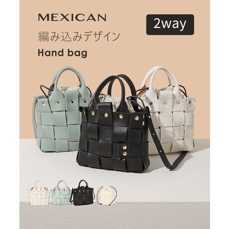 MEXICAN 編み込みデザイン2way ミニバッグ ハンドバッグ ショルダーバッグ 春夏秋冬