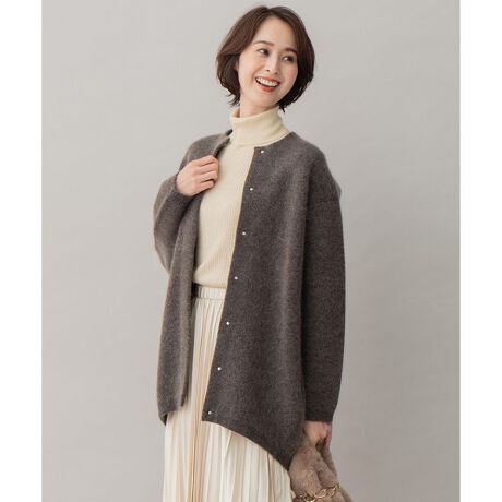 女性らしい優しい風合い、ニットアウター■デザイン本格的な冬コートの前に活躍するニットアウター。ミドル丈でパンツにもスカートにも合わせやすい絶妙なシルエットと、カーディガン感覚でさっと羽織れる軽さと膨らみがある素材感が魅力。カジュアルな印象のモヘアも、繊細なドット釦やグログランテープの付属使いでディティールに上質さをプラスすることでデイリーリュクスなアイテムに仕上げました。■素材毛並みの美しい微光沢感のあるモヘアにストレッチ糸をミックスし、通常のモヘアより膨らみを持たせた糸とストレッチポリエステルの糸を接結編みすることで、冬に向けたあたたかな膨らみを表現しつつも、相反する軽さを併せ持つニットです。※画像はサンプルを使用している為、実際にお届けする商品と仕様、加工、サイズが若干異なる場合がございます。予めご了承ください。※撮影環境の都合上、実際の商品と色味が異なって見える場合がございます。