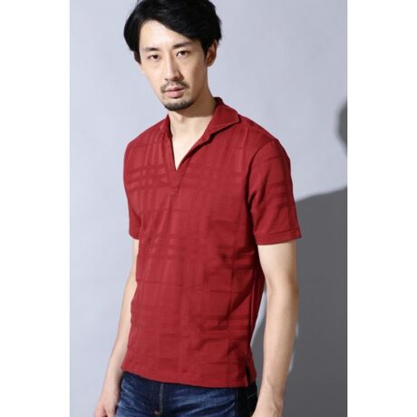 HIGH STREET∴チェックジャガード半袖スキッパーポロシャツ