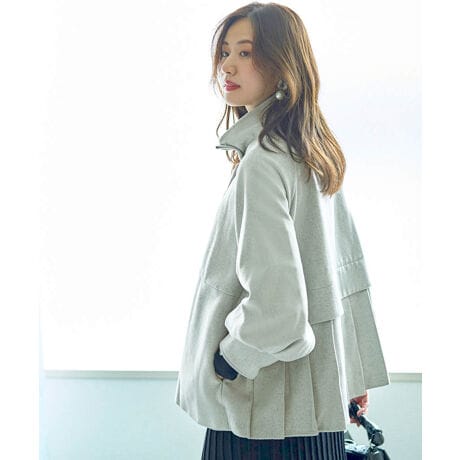 [型番:K1161]おもわず目を引く後ろのブリーツが、魅力のスタンドカラーウールコート。Aラインに広がるシルエットで横から見た時もバランスの良い仕上がりです。