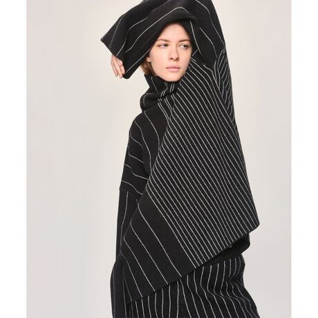 ピンストライプニット ハイネックポンチョ