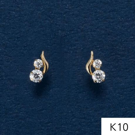 【リーフシルエットにキュービックジルコニアをセットしたK10素材のスタッドピアス】