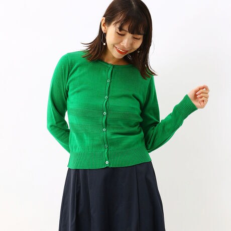 裾柄入り丸首カーディガン