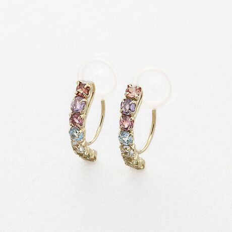 ガーネット、アメジスト、ピンクトルマリン、ブルートパーズ、アクアマリン、ペリドット、シトリンが織りなす鮮やかなグラデーションは、顔周りに華やかで洗練された印象に。