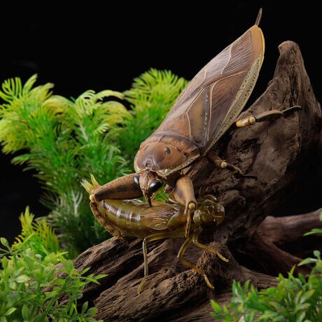 タガメに捕らえられ体をひねった状態をイメージ(一部可動します)。