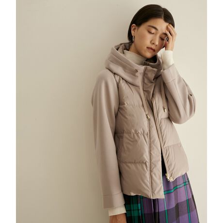 ダウンとフェザーを使用した保温性の高いショートダウンブルゾン。