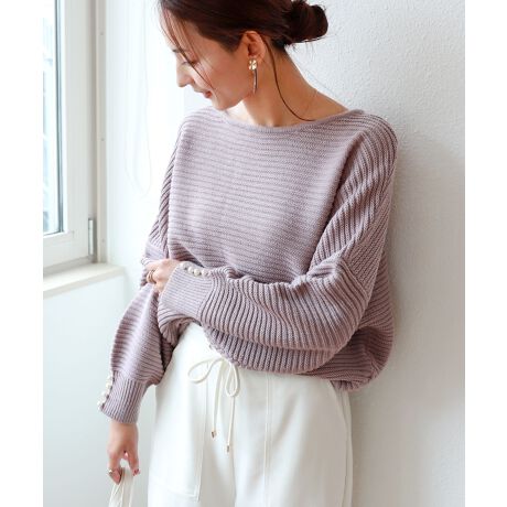 袖口にパール調ボタンをあしらった、