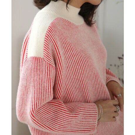 バイカラーストライプ配色感ポイントにリブ編みニット。全体的にゆるっとしたオーバーサイズデザインが、今っぽい1枚です!
