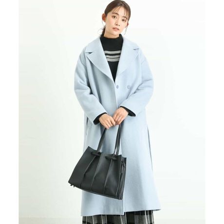 肩の位置を少し落としたり、襟周りの雰囲気に抜け感を出した女性らしいエフォートレスなコート。抜け感がありながらもきれい見えな素材を使用することできちんと感もある雰囲気に。オーバーサイズのシルエットはマキシスカートやワイドパンツと好相性。両サイドにスリットが入っているので足さばきの良さも魅力的。共地ベルトでメリハリのあるシルエットも楽しめます。