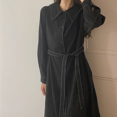 配色ステッチビッグカラーワンピース