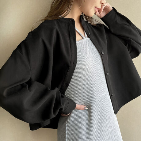 スタンドカラーピーチスキンショートシャツ