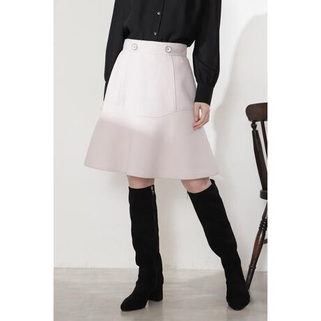 大人レディな雰囲気抜群のミニ丈スカート軽くてあたたかみのあるウール混のメルトン素材を使用しました。膝上くらいの上品なコンパクトな丈感と、美しいフレアのシルエットがポイントです。ウエストベルトにはボタンデザインを入れ、トップスをINしても決まる一枚です。※こちらの商品は水や雨に濡れたり、汗による湿気・乾燥状態での摩擦により、薄い色の衣服などに色落ち・色移りする可能性があります。ご使用の際にはご注意くださいますようお願い致します。