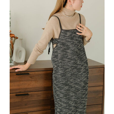 寒い時期はインナーにニットを合わせたり、暑い時期はノースリーブを合わせてロングシーズンご着用いただける1着。ワンピースの上からシャツやたぽっとしたニットを合わせてもかわいく着こなすことができます◎デザイン性のある2本の肩ヒモは長さの調整も効くので低身長さんから高身長さんまで幅広く着ていただけるアイテムに仕上げています。