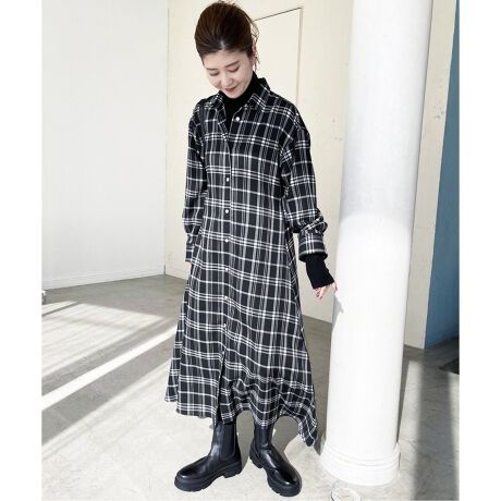 別注でオーダーしたタータンチェック生地を使用したシャツワンピース。