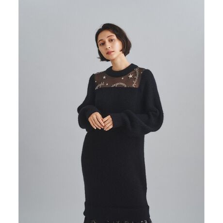 毛足のあるニットとロマンティックなスター刺繍チュールをドッキングした、大人可愛いワンピース。チュールならではの繊細な表情や重なりから生まれる立体感が女性らしく、着こなしをフェミニンに印象付けます。ドロップショルダー&締め付け感のないリラックスシルエットで、ストレスフリーな着心地を実現。パンプスなどで綺麗めにまとめるのはもちろん、タフなブーツを添えて今年らしく着崩した着こなしもおすすめです。