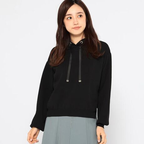 ふんわりとした生地感が魅力のスポンディッシュニット素材で仕立てたフード付きパーカー。ドローストリング部分はリボンとメタルの組み合わせがスタイリッシュ。ドルマリンスリーブがトレンド感あるシルエットの一枚です。