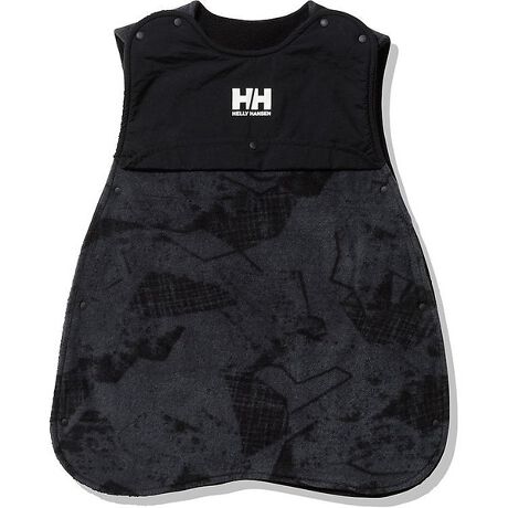 月・石・雲といった自然のモチーフをカモフラージュ柄に溶け込ませた、オリジナルプリントのフリース素材を使用したスリーパー。暖かく、心地いい肌触りです。股下にボタンがあり、スカート型とパンツ型の2通りで使えます。前身頃には、はっ水加工を施した生地を配置。下部にフラップがあり、ボタンを留めて上に固定すると、簡易的な受け皿に。飲みこぼしや食べこぼしがあっても、フリース部分まで汚れにくい仕様です。HELLY HANSENが大切にしているフィールドへの環境負荷を減らすため、環境配慮型素材「GREEN MATERIAL」を使用したプロダクト。海洋プラスチックゴミを再生させた「海洋リサイクルポリエステル」を採用しています。
