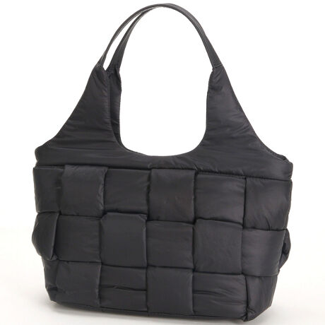 筒状にボンディングしたパーツをメッシュに編み込んだトレンド感のあるトートバッグ。