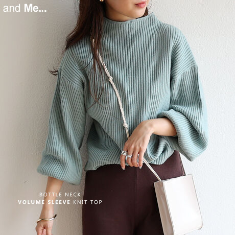 ボトルネック ボリューム袖 リブ ニット