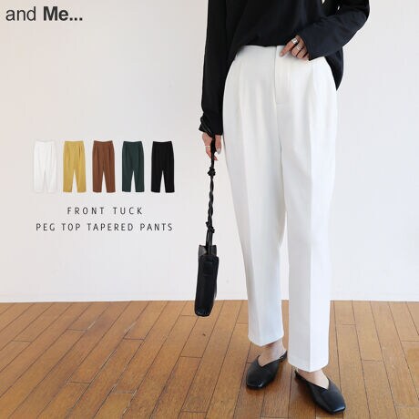 フロントタック ツイル テーパード ペグトップパンツ