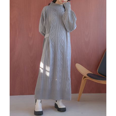 【WEB限定】サイドベルト付きアシンメトリーケーブルワンピース