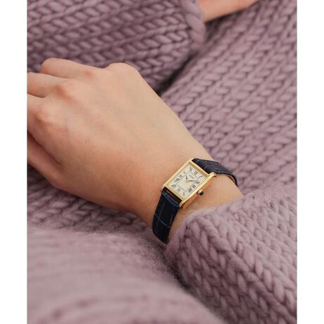 アイボリーのダイヤルにネイビーのレザーベルトがエレガントなスクエア型ウォッチ。クラシカルなローマ数字を採用し、気品を放つエレガントなルックスに仕上げました。アクセサリー感覚で身につけられるコンパクトなデザインが、日常に寄り添い、手元に女性らしさを放ちます。