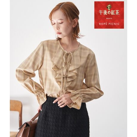午後の紅茶×ROPE' PICNIC/チェックラッフルブラウス/リンクコーデ