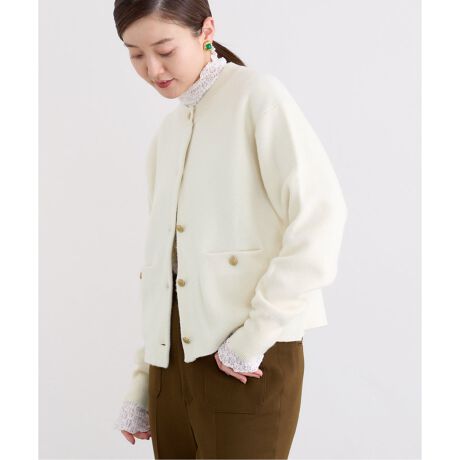 表面には糸の細いメリノウールを使用し柔らかく手触りが良く、裏面にはコットンを使用してさらっとした肌触りで着心地の良いダブルフェイスのニットカーディガン。