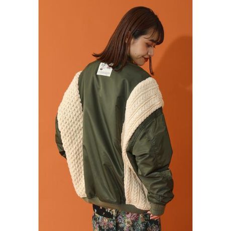 ミリタリーアウターのマストアイテムといえばMA-1。素材感、ディテール、シルエット全てにこだわりヴィンテージライクに仕上げました。ヴィンテージニットの中でも人気のあるフィッシャーマンニットのケーブル編みデザインを活かしたドッキングアイテム。裏地へのこだわりも詰まった一着です。