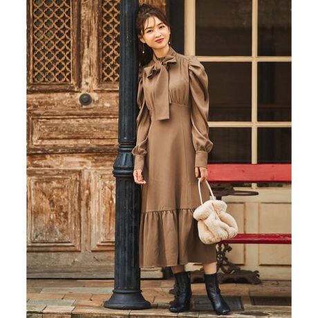 お出かけだけでなくお呼ばれシーンでも活躍する袖ギャザーワンピース【Design】・ウィルセレクションらしい上品レディな印象が目を惹く袖ギャザーワンピース。・袖のギャザー部分はたっぷりと生地を使い落ち感を出し、また袖口をカフスでスッキリとまとめることで動きのあるギャザー袖に仕上げました。・スカート部分にも切り替えを入れることで表情をプラス。・ネック部分のリボンは取り外し可能で外すとプチハイフリルネックとなっており、シンプルな着こなしに変化をつけることも出来ます。・お出かけシーンだけでなく、お呼ばれシーンでも活躍が期待できるワンピースです。・バックファスナー、バックレースアップ仕様。【Fabric】・さらっとしたシワになりにくいポリエステル生地を使用。・ご自宅でお手入れが出来るのも嬉しいポイント♪・秋のムードを盛り上げるピンク、モカカーキ、ブルーの3色展開となります。【Care】手洗い可能