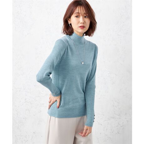 ボタンアクセントウールハイネックニットプルオーバー