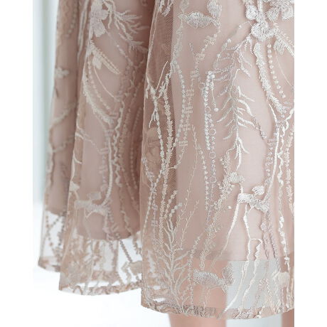 この総レースバックリボンワンピースドレスは、華やかで上品な印象を与える一枚です。レース使いが施され、袖や背中のデザインも美しく、女性らしさを引き立ててくれます。
