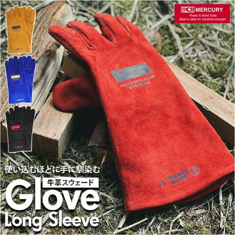 アメリカ雑貨の定番「MERCURY(マーキュリー)」から、あらゆる場面でハードに使えるロングスリーブグローブが新登場。丈夫な牛革(スウェード)を使用!使い込むほど手に馴染み、長く愛用できるアイテム。ガレージでの作業やガーデニング時も、ガシガシ使えるのが嬉しい♪手の甲部分にデザインされたブランドロゴがアクセント。ロングタイプなので、焚き火のそばでも安心◎定番カラー&ポップなカラーのバリエーション!(※革特有の匂い、左右の個体差、色味の違いなどは、製法上の理由により避けられないものであり不良品ではございません。ご了承願います。)