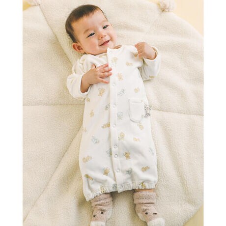 アニマル 総柄 くま 耳 モチーフ 2WAYオール ベビー (50〜70cm)